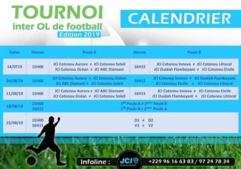 Les demi-finales du Tournoi Inter Organisation Locale de football organisé par la Jeune Chambre Internationale Cotonou Océan ont livré leurs verdicts ce dimanche 18 août 2019 sur le gazon synthétique de l’Université d’Abomey calavi.