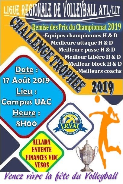 Approchée, la Présidente de la Ligue Regionale Atlantique/Littoral de Volleyball a dévoilé le but réel du Challenge Trophée. Selon Grâce Mayrama GOUDA SARE, « le Challenge Trophée est réservé aux meilleures équipes sorties du championnat Regional de l’Atlantique et du Littoral de la saison 2019. »