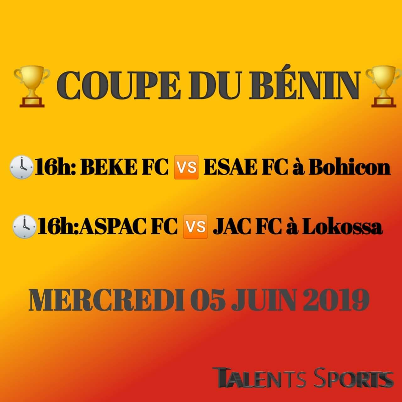 L’édition 2019 de la coupe du Bénin va connaître dans l’après-midi de ce mercredi 05 juin, ses équipes finalistes. Lesquelles seront vainqueurs des confrontations des deux demi-finales ?
